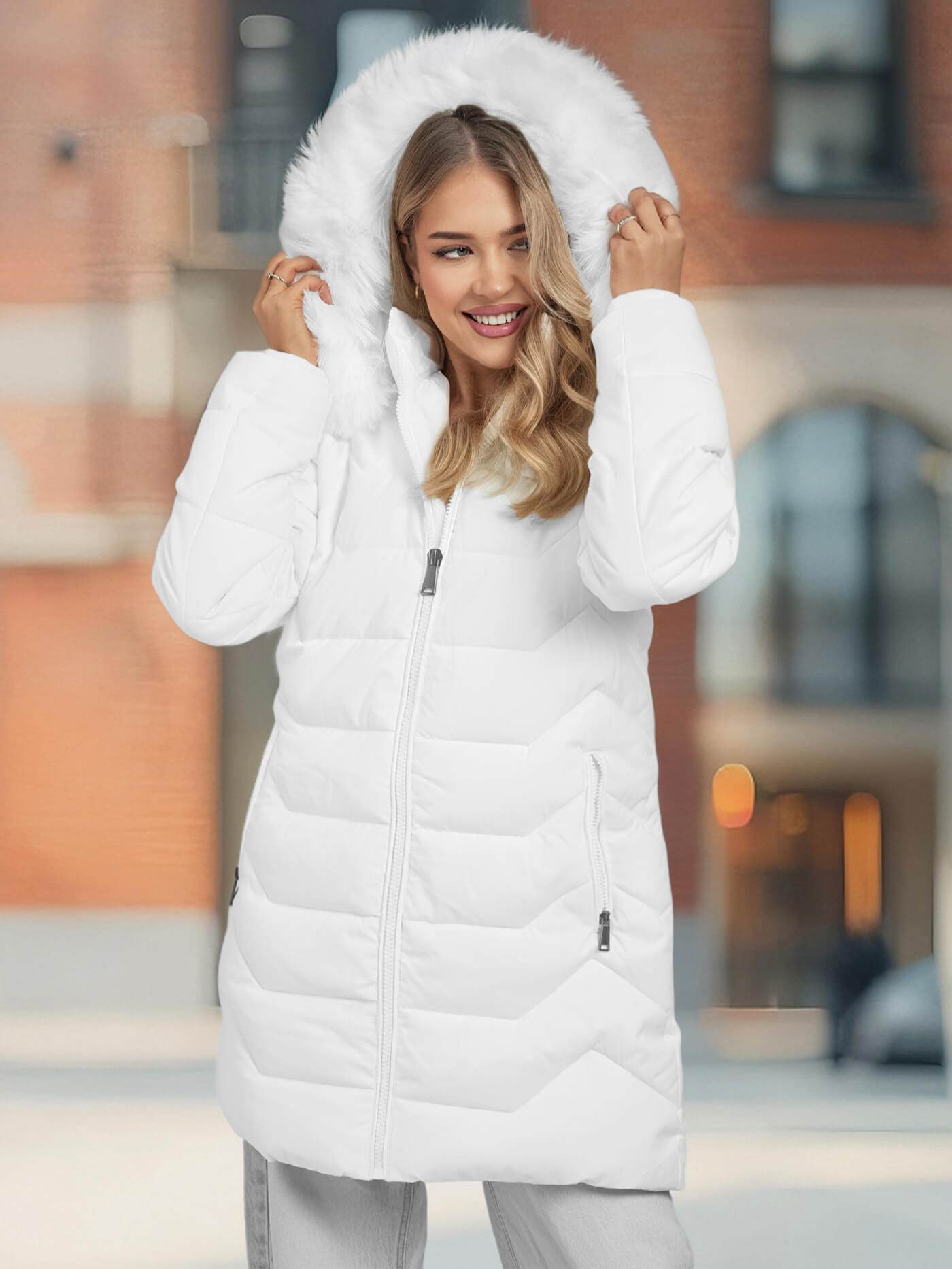 Styl i komfort w jednym - Kurtka zimowa damska długa z futerkiem biała OZONEE JS/16M9121/281