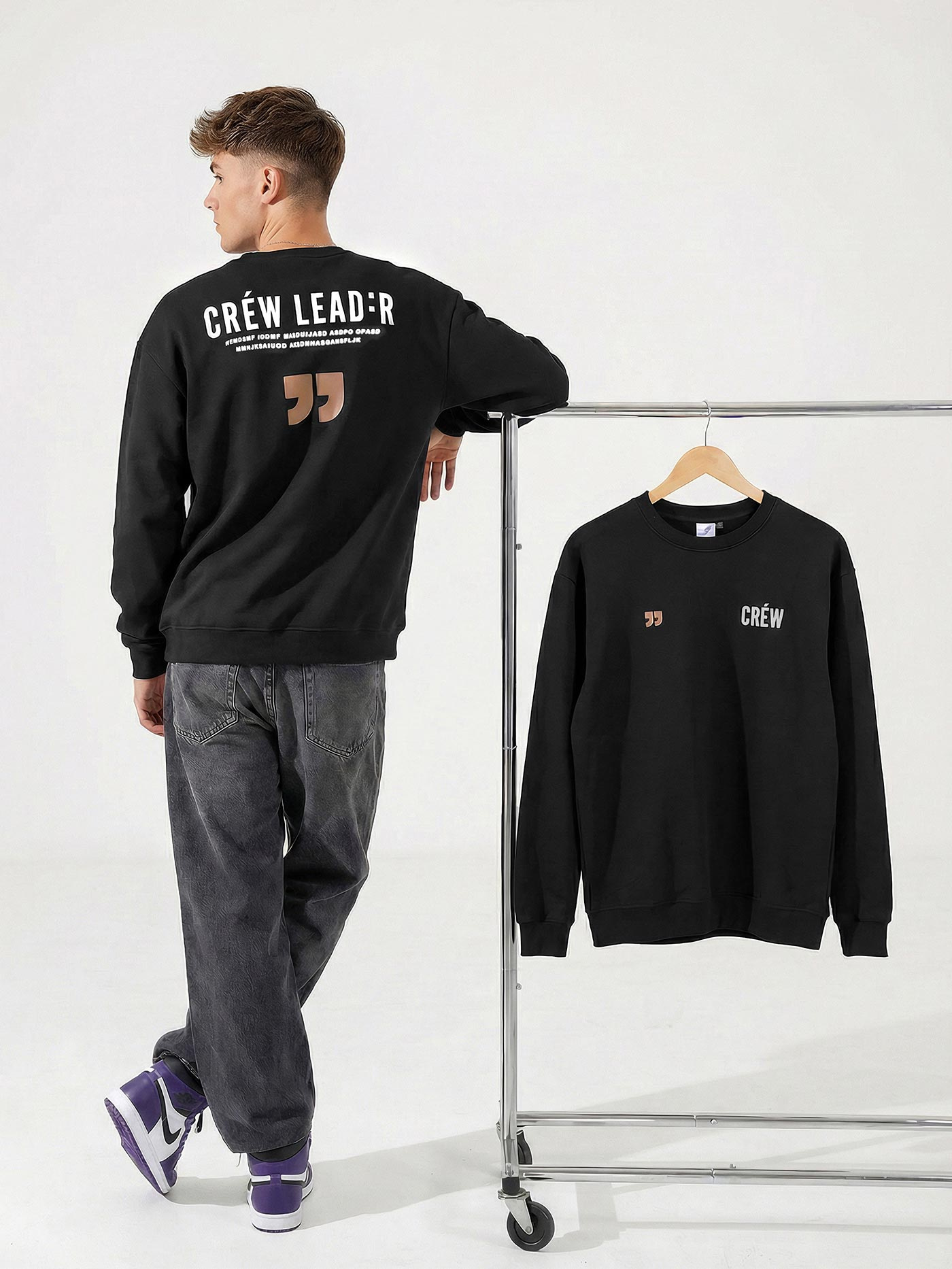 Okrągły dekolt nadaje klasyczny charakter, a ściągacze przy rękawach i u dołu stabilizują dopasowanie bluzy. Konstrukcja zakładana przez głowę sprzyja prostocie użytkowania i minimalistycznej formie.