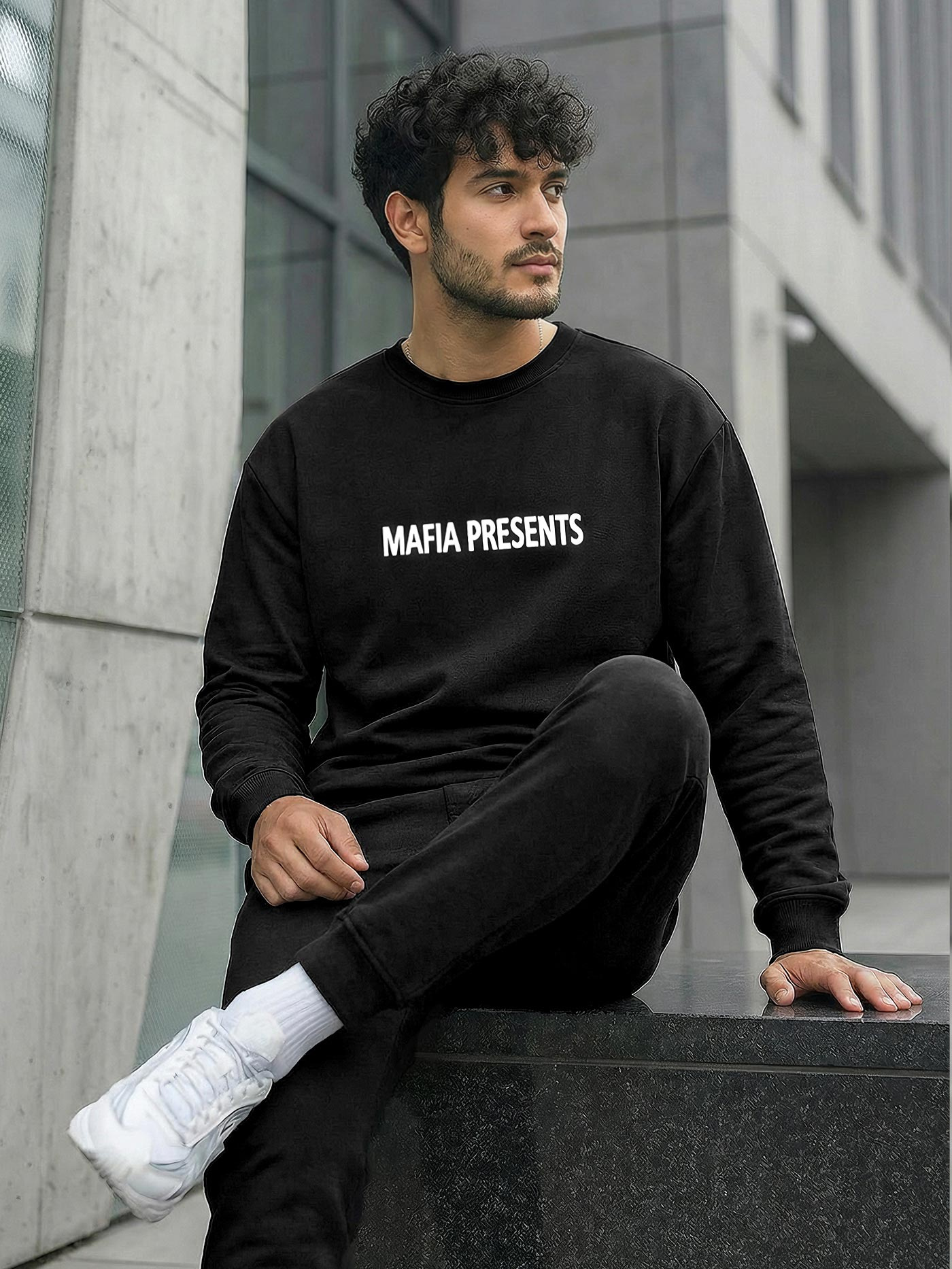 Bluza męska marki Ozonee to czarny model z nadrukiem, wykonany z mieszanki bawełny i poliestru, o kroju regular, zakładany przez głowę, z okrągłym dekoltem oraz dołem i rękawami wykończonymi ściągaczami, przeznaczony do codziennego użytkowania.