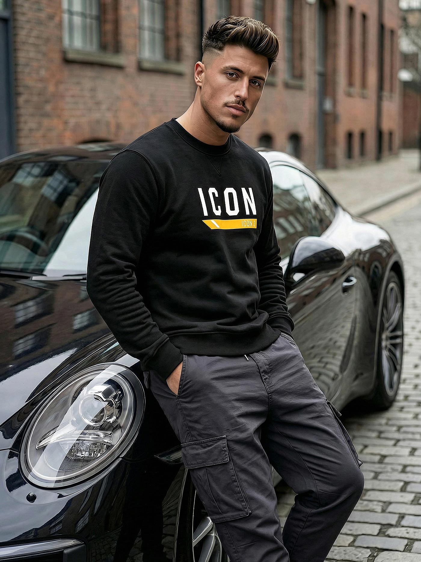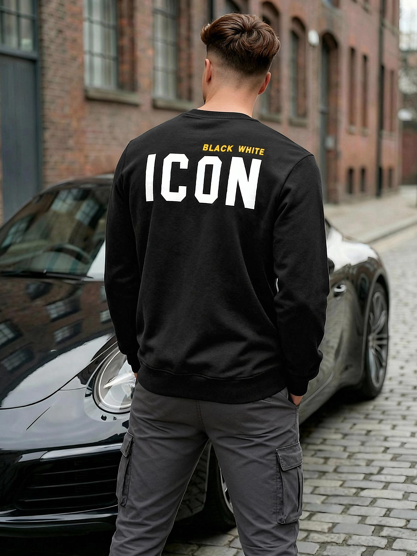 Bluza męska marki Ozonee to czarny model z nadrukiem o kroju regular, zakładany przez głowę, wykonany z mieszanki bawełny i poliestru, wyposażony w okrągły dekolt oraz ściągacze u dołu i przy rękawach, przeznaczony do codziennego noszenia w sezonie całorocznym.