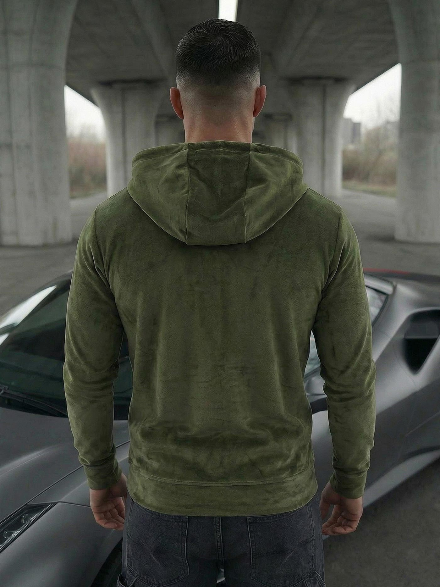 Bluza welurowa męska z kapturem khaki OZONEE JS/8B1168/29Z - styl i komfort w jednym