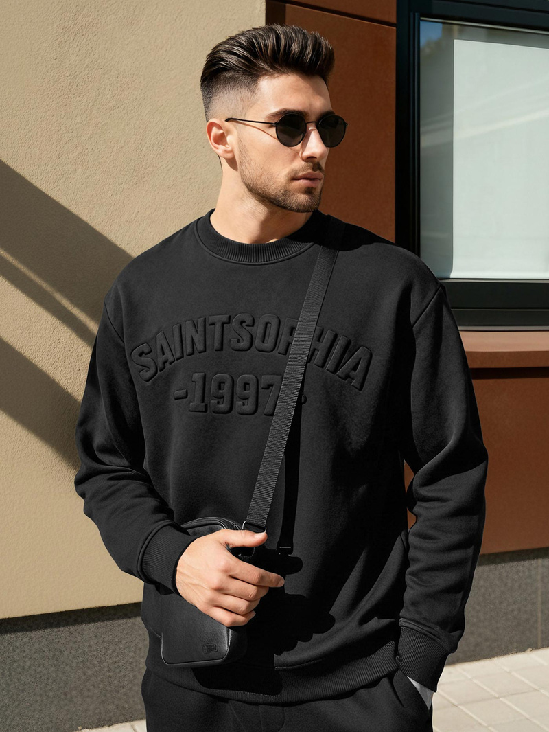 Czarny kolor w połączeniu z nadrukiem nadaje bluzie wyrazisty, ale nadal uniwersalny charakter. Model ten dobrze komponuje się z jeansami, spodniami dresowymi lub joggerami, tworząc spójne stylizacje casualowe i miejskie.