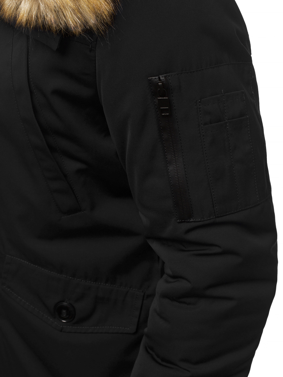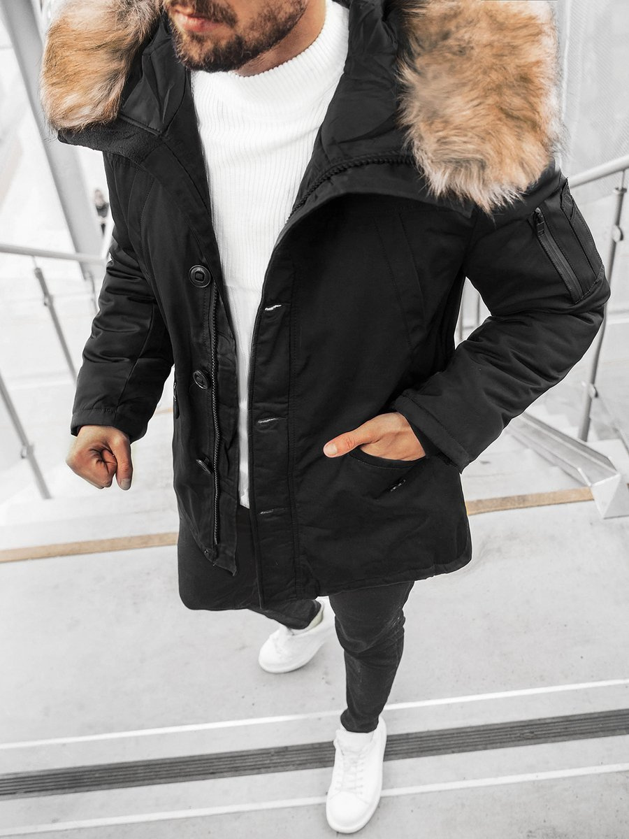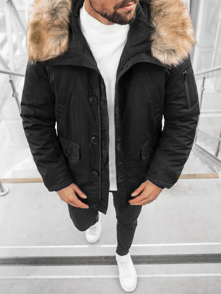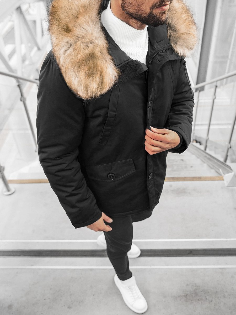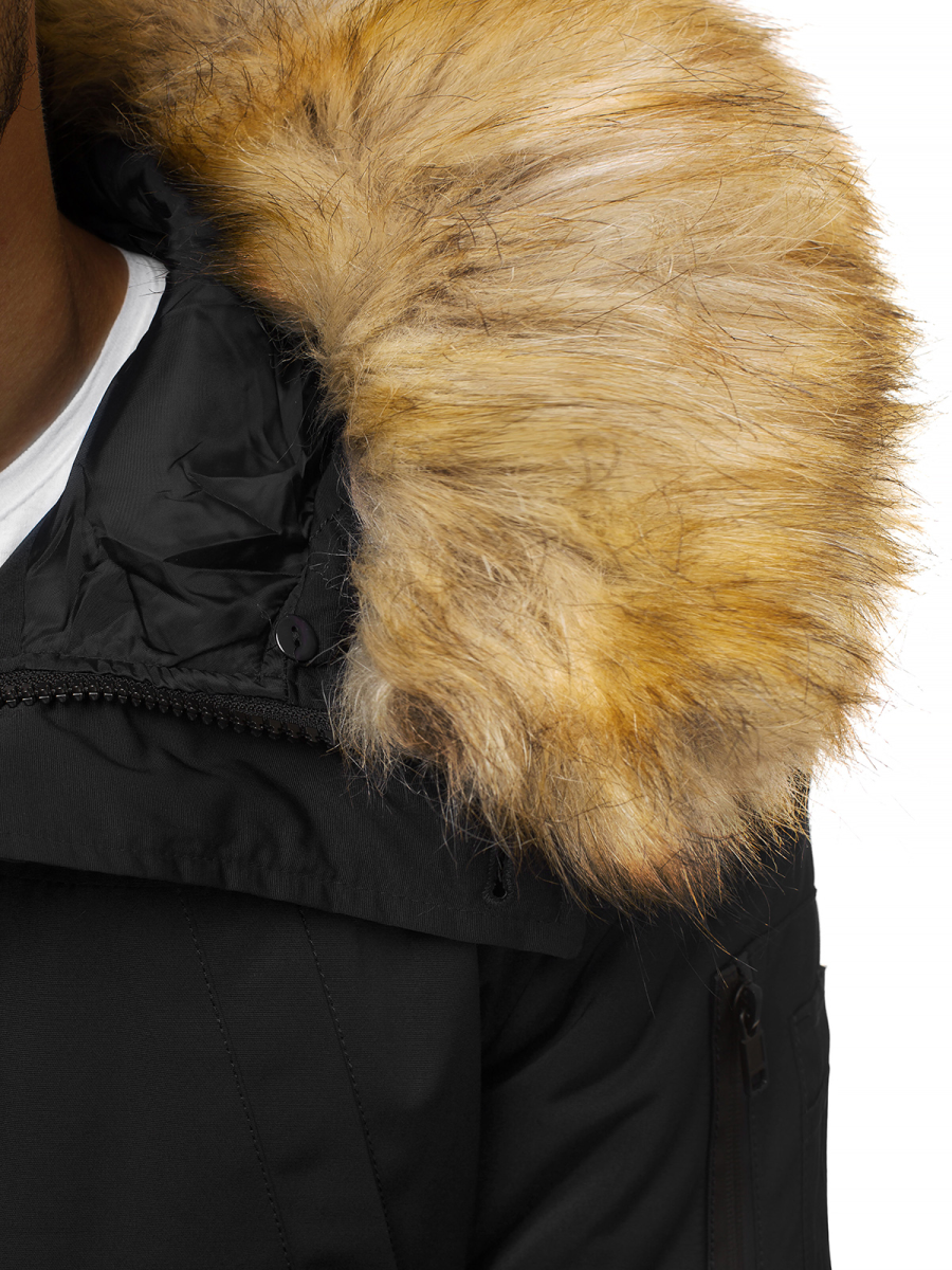 - Чоловіча куртка з знімним хутром на капюшоні, Матеріал: 100% Поліестер