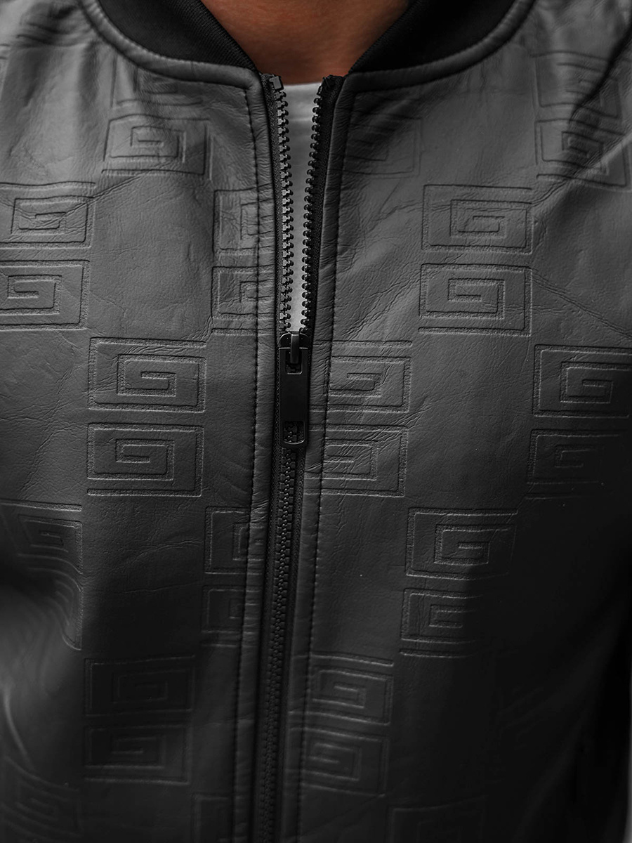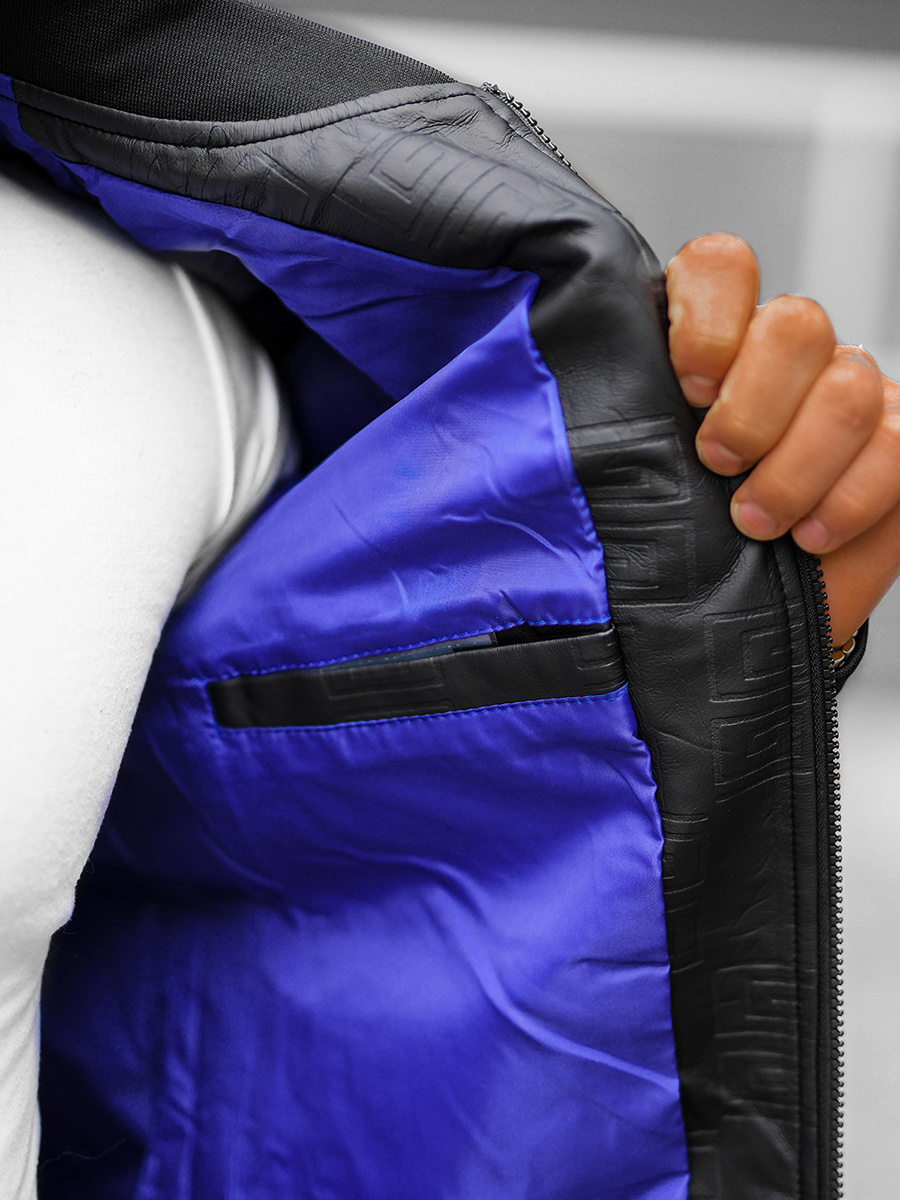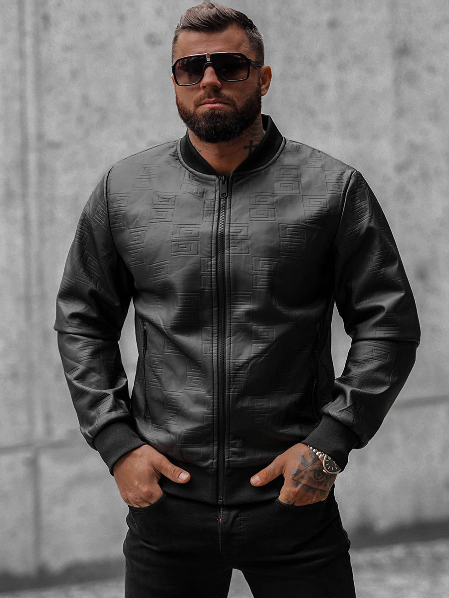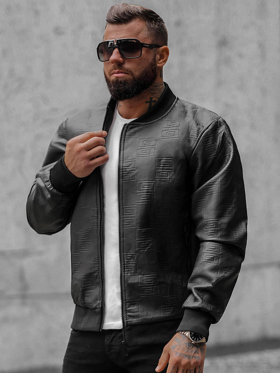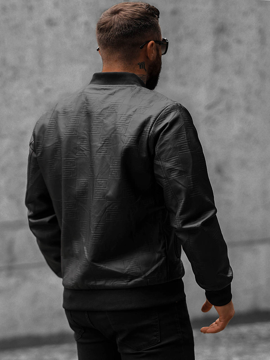 Чоловіча шкіряна куртка Чорна OZONEE O/3A65