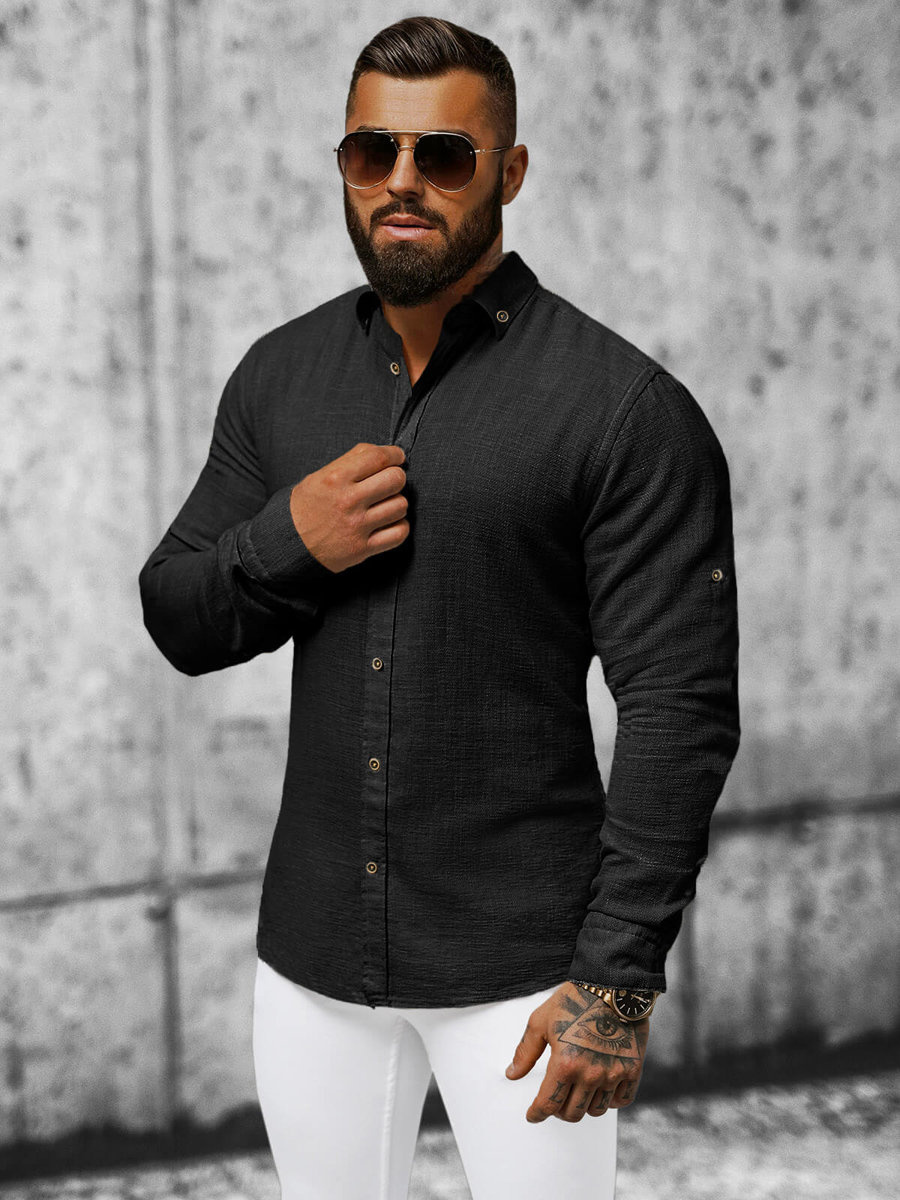 Класична сорочка чоловіча чорна OZONEE O/V42