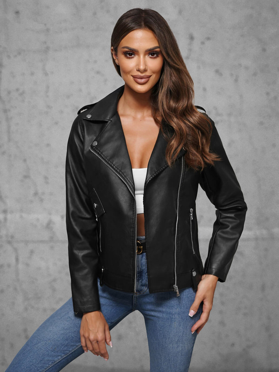 Жіноча шкіряна куртка Чорна OZONEE JS/11Z8060