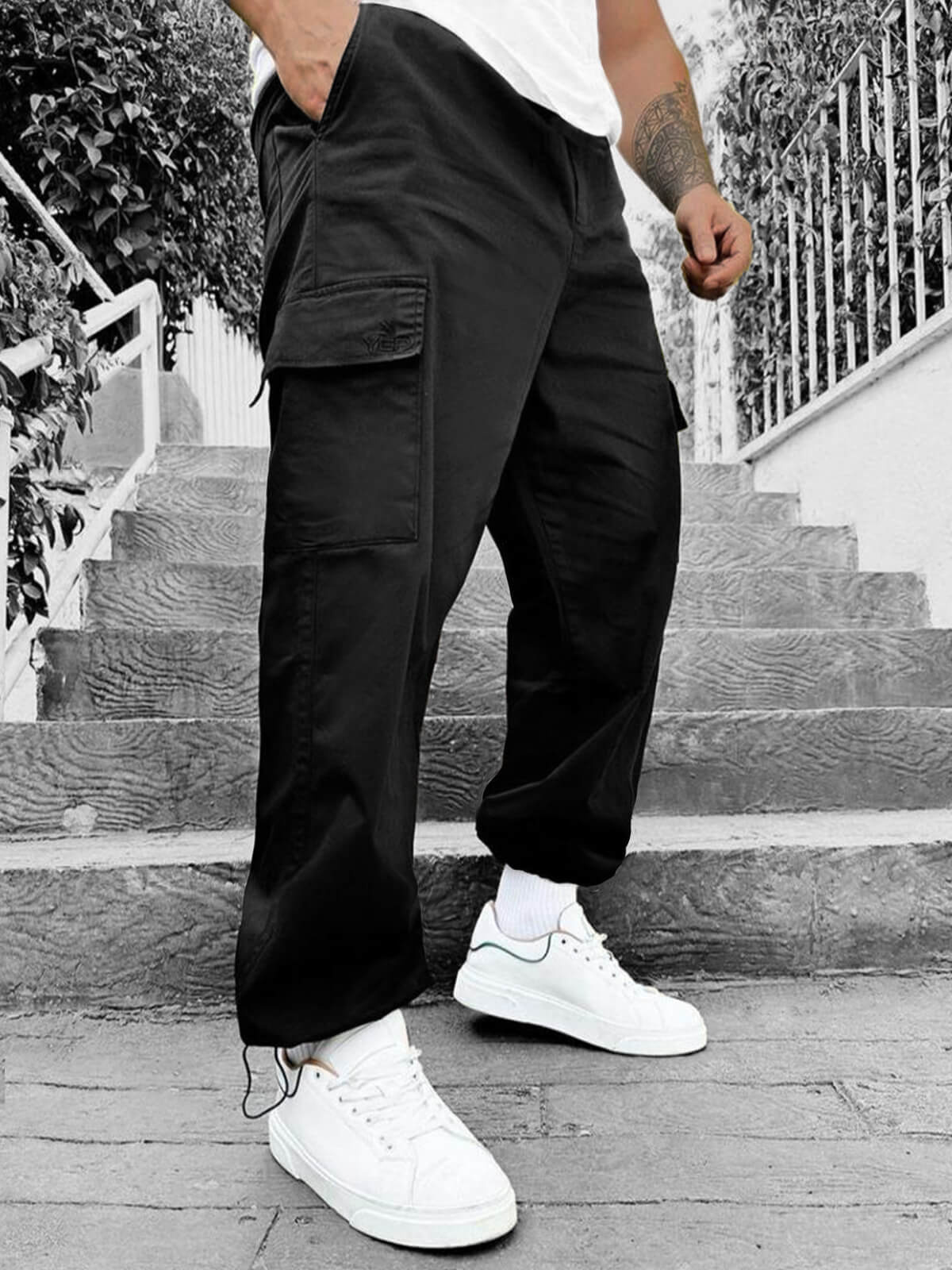 | Розмір | Szerokość w pasie A | Szerokość nogawki od kroku B | Długość całkowita C | Długość nogawki wewnętrzna D | Szerokość na dole E |