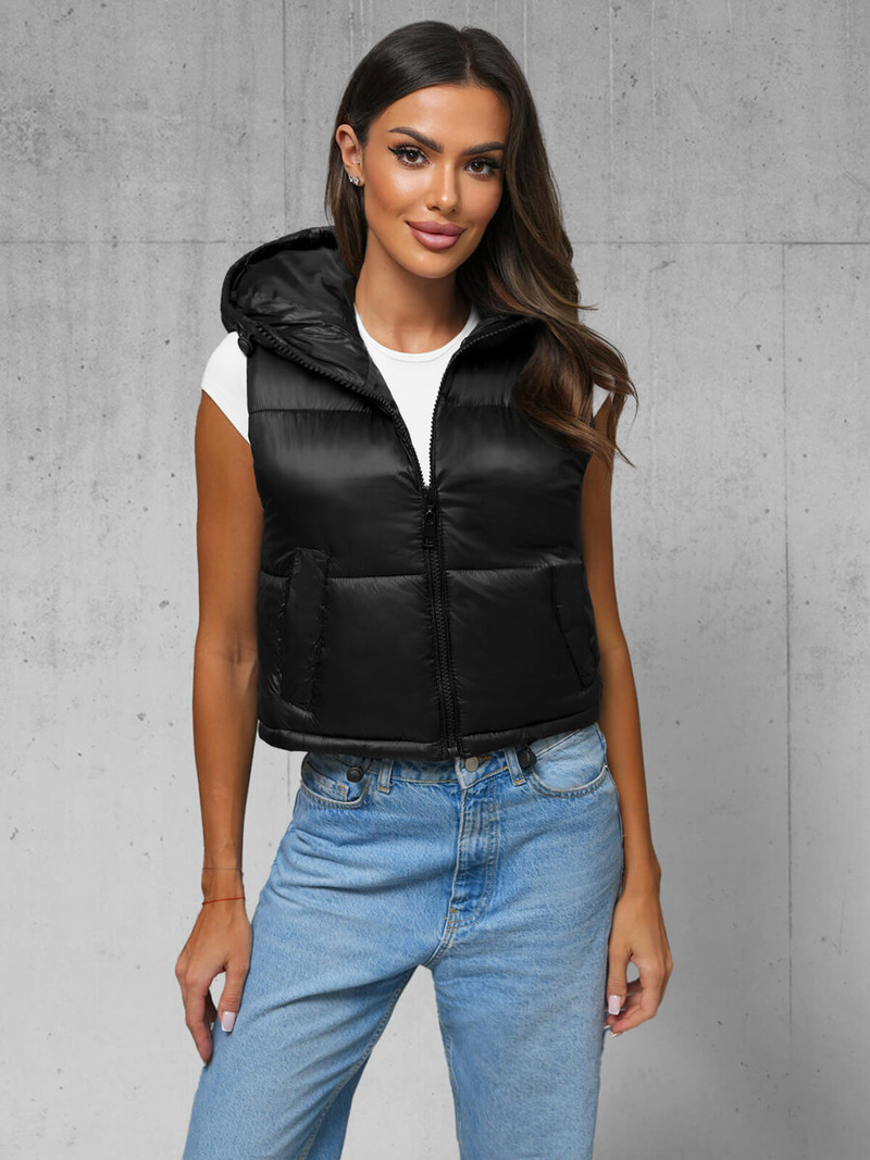 Стьобаний жіночий жилет чорний OZONEE JS/5M3191/392