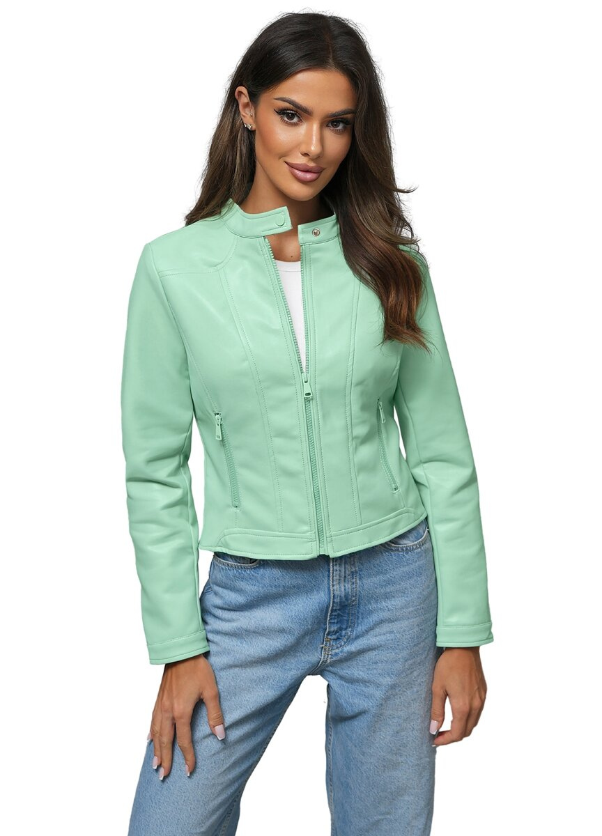 Жіноча шкіряна куртка м'ятна OZONEE JS/11Z8127