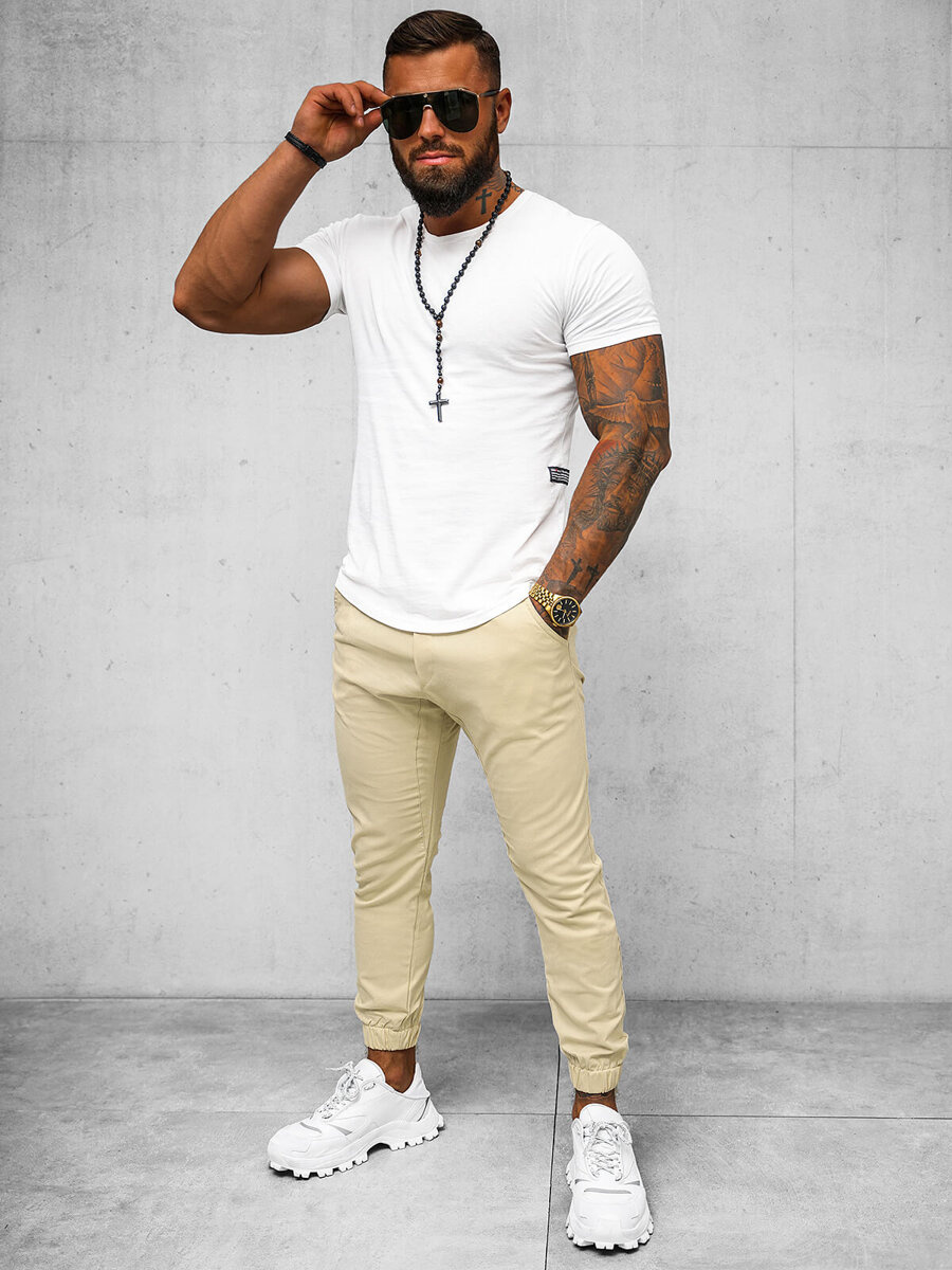 | Розмір | Szerokość w pasie A | Szerokość nogawki od kroku B | Długość całkowita C | Długość nogawki wewnętrzna D | Szerokość nogawki na dole E |