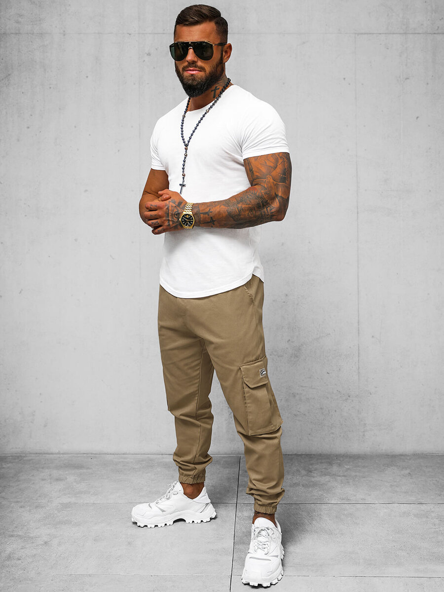 | Розмір | Szerokość w pasie A | Szerokość nogawki od kroku B | Długość całkowita C | Długość nogawki wewnętrzna D | Szerokość nogawki na dole E |