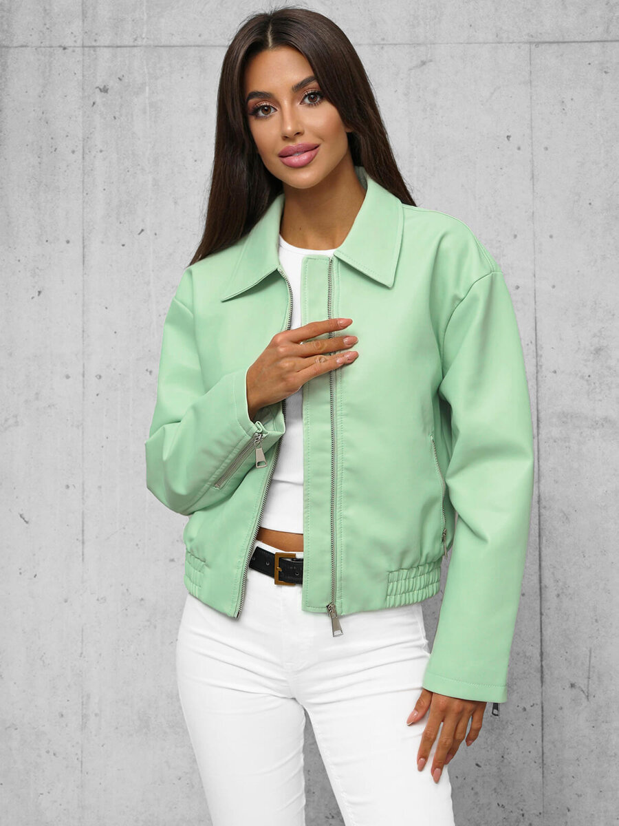 Жіноча шкіряна куртка м'ятна OZONEE O/G116Z