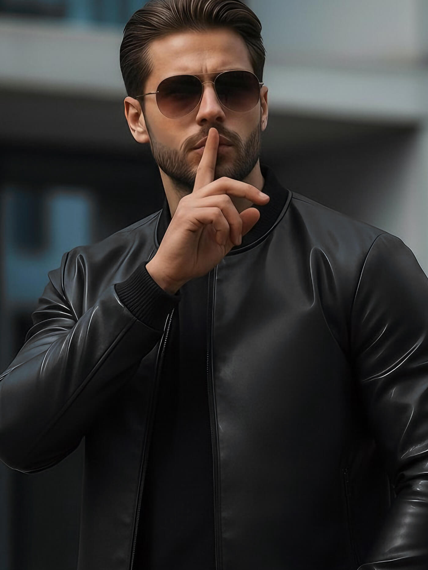 Чоловіча шкіряна куртка Чорна OZONEE JS/11Z8015Z